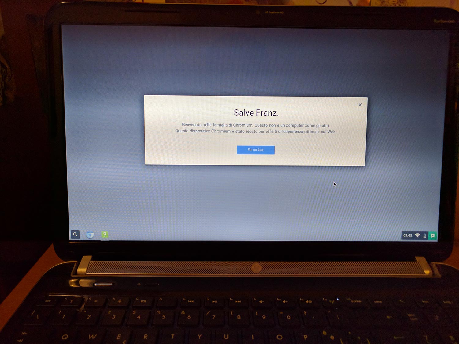 Al termine della configurazione di base ci ritroveremo finalmente su Chromium OS! È stato facile, no? 😉